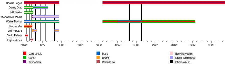 lead guitar | Randall, who had played on albums Can't Buy a Thrill, Katy Lied and The Royal Scam, made guest appearances in 2009[62] and 2019.[63][64] |