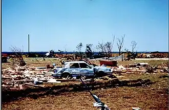 April 19, 1976 – Homes were swept away, and multiple houses were slabbed. Several teenagers were caught in the open and were picked up and thrown over 1,000 yards, but no fatalities were reported.[61]
