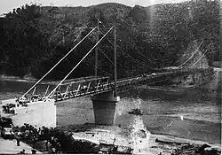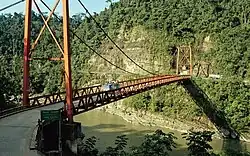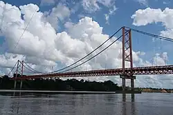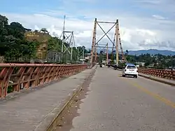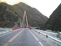 The modular suspension bridges have a great success in Peru, the type of bridge developed by the Austrian company Waagner-Biro has the advantage of being simple and quick to implement. These bridges can be made by locals or unskilled workers, the components are fixed and assembled on site, so no welding is required.[14] The company was in charge of building the longest suspension bridge in the country, the Continental Bridge (also known as the President Guillermo Billinghurst Bridge), the elements of which were delivered in 1981, but for political reasons the project did not resume until 2004 and the inauguration took place in 2011. This bridge is part of the Interoceanic Highway which provides a link between Brazil and Peru.[15][16]
