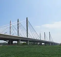 4 | Tacitusbrug | 270 m (890 ft) | 1,055 m (3,461 ft) | Cable-stayed East: steel deck and pylons, axial cable-stays West: concrete deck and pylons 105+270+105 |