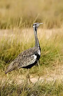 Bustards are birds in the family Otididae in the monotypic order Otidiformes. There are currently 26 extant species of bustards recognised by the International Ornithologists' Union.[1] Many species of fossil bustards are known from the Miocene onwards; however, their exact number and taxonomy are unsettled due to ongoing discoveries.[2]