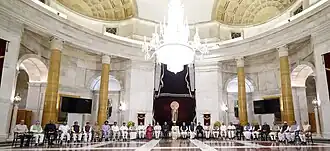 The governor is de jure head of the state government; all its executive actions are taken in the governor's name. However, the governor must act on the advice of the popularly elected council of ministers, headed by the chief minister, which thus holds de facto executive authority at the state-level. This situation is analogous to that of the President and the Prime Minister at the national level. The Constitution of India also empowers the governor to appoint or dismiss a ministry, recommend president's rule, or reserve bills for the president's assent.[1]