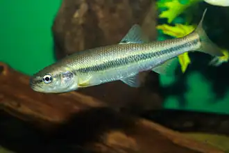 | Blackstripe topminnow | Fundulus notatus | Large lowland rivers, pools of streams | ||