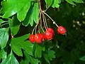 Hawthorn, may-tree | Crataegus monogyna | Native to Europe, northwest Africa and western Asia; naturalized elsewhere | Leaves (when young, in April), edible raw as a salad vegetable Berries (in autumn), edible raw, or made into jellies, jams and syrups, or used as a flavoring |