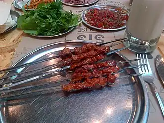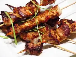A popular meal of skewered and grilled cubes of meat.[67] |