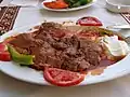 Associated with the Tokat region, it is made with marinated lamb, grilled inside an oven, together with aubergines, tomatoes, potatoes, entire onions and garlics and served over a special flatbread called lavaş (a thicker yufka) and softened with the juice of the meat and tomatoes. |