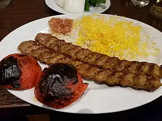 | Kabab koobideh (کبابِ کوبیده, lit. 'flattened kebab') |