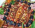 Shashlyk, meaning skewered meat, was originally made of lamb.[66] Nowadays it is also made of pork or beef depending on local preferences and religious observances. |