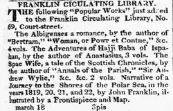 - ^ Catalog of the Washington Circulating Library, Boston. 1817