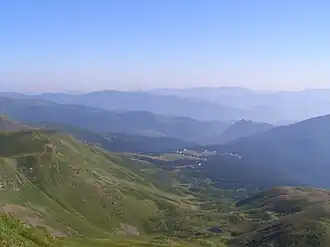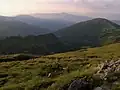 Chornohora (lit. 'Black Mountain') is a mountain range in the Carpathians which consists of the highest mountain peaks in the country. Other notable ranges are Maramureş and Gorgany, also located in the Carpathians. In the Crimean Mountains, the highest mountain range, Babuğan yayla, is located closer to the Crimean Southern Coast and is part of the main mountain chain.