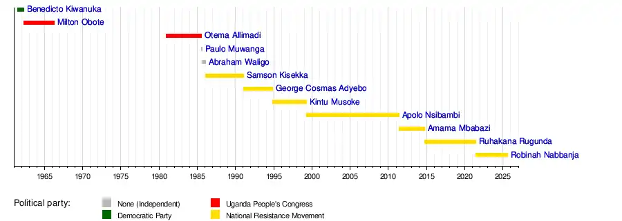 Robinah NabbanjaRuhakana RugundaAmama MbabaziApolo NsibambiKintu MusokeGeorge Cosmas AdyeboSamson KisekkaAbraham WaligoPaulo MuwangaOtema AllimadiMilton OboteBenedicto Kiwanuka