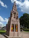 1976 - 2021, 2023 | George Wagstaffe | Market cross | Ferro-concrete, Hollington stone, anodised aluminium, fibreglass | Coventry City Council | [2] Removed and dismantled between 2019 and 2021. Replaced by a new replica in 2023.[20]