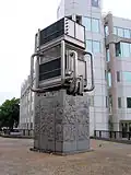 1979–1982 | Eduardo Paolozzi | Whitfield Partners | Sculpture | Grade II | Paolozzi's cast iron relief panels, painted in aluminium, encase the cooling equipment for the air conditioning of Pimlico tube station. Conceived as a "pivot or 'marker'" on the route from the tube station to the Tate Gallery, it was described by the architects as "an opportunity to transform a mechanical necessity into a genuine sculpture". Commissioned by the Crown Estate Commissioners.[6] |