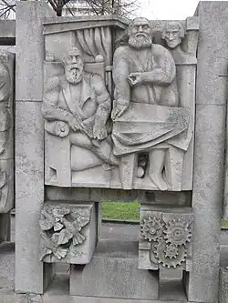 A 1973 relief depicting Marx originally installed on a building of the University of Leipzig but relocated in 2008.[5] |