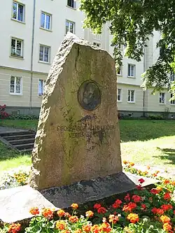 Bust designed in 1968 by Arnd Wittig, located in Lennépark on Karl-Marx-Straße. |