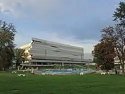 The swimming pools and related diving facilities have been expanded and improved several times.[1][2] Renovations c.2006 before the 2006 European Championship added outdoor 50-meter pool and diving pool, named after Tamás Széchy. Total of indoor and outdoor pools, including for diving, was then eight. | |