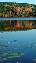 Little Cedar Lake is a lake in Southeastern Wisconsin; United States. It is located at the geographic center of Washington County, in the Town of West Bend, and Town of Polk. The lake covers an area of 246 acres (1 km2), has a shoreline of 4.5 miles (7 km), and reaches a maximum depth of 56 feet (17 m).[1] Its source is Cedar Creek which flows into the northwest side of the lake, and its outflow is Cedar Creek, which continues to flow south at the bottom a small dam at the extreme southern tip of the lake. Spring, summer and autumn activities on the lake include boating, fishing, and water skiing. In winter the lake freezes over completely with ice up to 36 inches thick, Winter activities on the lake include ice fishing and snowmobiling. Many species of fish are found in Little Cedar Lake, including northern pike, walleye, rock bass, smallmouth bass, bluegills, carp, and bullheads. The Lake is located approximately 30 mi (48 km) NNW of Milwaukee, and 5 mi (8.0 km) SW of the City of West Bend and accessible by Ackerman's Grove County Park.