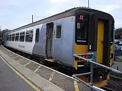 At the time of the crash, the train was travelling at approximately 40 miles per hour (64 km/h); the driver had applied the train's emergency brake a few seconds beforehand having realised the lorry was not going to stop before entering the crossing, and thus had been able to slow the train from a speed of 50 miles per hour (80 km/h).[5] The first carriage of the two-car train derailed as a result of the collision, and the lorry was overturned.[4] Although the train driver had been able to warn passengers in the front carriage to brace for an imminent impact,[6] he, the conductor and 21 passengers were injured.[2] The injuries to the driver and four of the passengers were serious, and two others stayed overnight in hospital.[7]