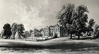 The house was then bought by the Conservative party politician Alexander Henry Campbell in July 1862. In October 1868, The Times carried advertising stating that the house, having failed to sell at auction, was now available for offers. It was stated to be "a moderate-sized mansion, in the Italian style, with charming terraces and gardens, overlooking a delightful and finely-timbered park, with a model farmery; the whole in perfect order, and extending over about 110 acres".[9]