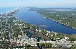 Little Lagoon is located on the western side of Gulf Shores, Alabama, and is situated between the Gulf of Mexico and Bon Secour Bay. The lagoon has four small fresh/brackish water lakes that drain into it, Lake Shelby (678 acres), Middle Lake (250 acres), Little Lake (45 acres), and Gator Lake (45 acres).[1] While the Little Lagoon Pass connects the lagoon to the Gulf of Mexico. The pass is located at the southern end of the lagoon and is a popular spot for fishing.