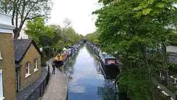 The basin and the Grand Union Canal form the southern boundary of the electoral ward. This means that boats moored along eastern end of the Grand Union Canal from Ha' Penny Bridge to the junction (a distance of 520 yards (480 m)) are moored within Little Venice electoral ward as are the boats moored on the Regents Canal up to the western portal of the Maida Hill Tunnel (a distance of 350 yards (320 m)).[8]