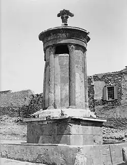The cost of a liturgy varied greatly according to its nature and prestige.[32] The least expensive was the eutaxia (εὐταξία), known by a single mention,[32] which cost only 50 drachmas; its nature is unknown - it may be related to the Amphiareia Games at Oropos[33] and probably did not last a long time.[34] A dithyrambic chorus at the Panathenaea cost only 300 drachmas.[35] However, a choregia in the Dionysia could cost up to 3000 drachmas,[36] or, "counting the consecration of the tripod, 5000 drachmas".[35]