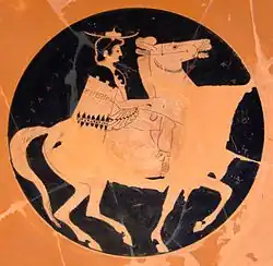 One can classify liturgies into two main categories.[6] Those associated with the liturgical or agonistic calendar (related to sporting and religious events) are mainly the gymnasiarchia (γυμνασιαρχία), that is to say, the management and financing of the gymnasium, and the choregia (χορηγία), the maintenance of the choir members at the theater for dramatic competitions. There were also many other minor liturgies. The hestiasis (ἑστίασις) was to fund the public dinner of the tribe to which the liturgist belonged;[7] the architheoria (ἀρχιθεωρία) to lead delegations to the four sacred Panhellenic Games;,[8][9] the arrhephoria (ἀρρηφορία) to cover the cost of the arrhephoroi, four girls of Athenian high society who brought the peplos to the Athena Parthenos, offered her cakes and dedicated white dresses adorned with gold,[10] amongst others. There was considerable creativity in relation to the liturgy, "and with the practicality which characterised their attitude on the subject, the cities were capable of creating new liturgies in accordance with their immediate needs, or of suppressing them temporarily or permanently.".[5] All of these liturgies are part of a religious festival[6] and were recurring (ἐγκύκλιοι).[11]