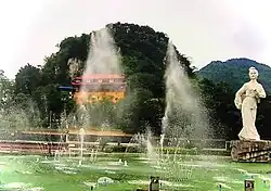 Liu Sanjie (Chinese: 刘三姐) was a Chinese folk music singer, who is the Liu family's third daughter, with an original name of Liu Shanhua. Liu is a legendary figure of Zhuang people in Guangxi and her songs were melodious and touching, therefore she was dubbed as the "Goddess of Singing".[1] The earliest story about her can be found in the Southern Song Dynasty (1127-1279). Many legends and folk songs about her were created starting in the Ming (1368-1644) and Qing (1644-1911) dynasties.[2] Liu Sanjie is said in one version to be a commoner girl born in 703 in Zhuang. She was said to be a wunderkind, able to compose impromptu songs at will. Her songs were touching and sonorous, so she was called the Song Fairy.[3] She subsequently taught singing in the surrounding areas. Many people have come to compete with her in singing. Her talent, however, attracted jealousy from the local hoodlums, which resulted in her early death. The evil farmer Mo Huairen was said to make Liu Sanjie his slave girl and bribed officials to oppress her when she refused to do so. Despite various versions of Liu Sanjie's tales, for hundreds of years, Zhuang people have maintained their adoration for her.[4]