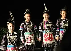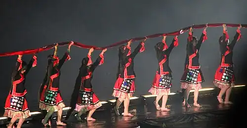 Liu Sanjie's song's style was also affected by the Cultural Revolution conducted by Chinese politicians during 1966 and 1976. During this period, the political thoughts were dominated by the oppression of those literate in Chinese society. It was during the Chinese Cultural Revolution period of time when Liu's revolutionary songs and performance were terminated. To some extent, Liu's songs and performance shifted to civil-wide cultural movements in mainland China during this period of time. Liu's song and performance style had to present an implicit expression style and provided revolutionary implications for audiences.[23] Later on, affected by China's opening and reform policy implemented in 1978, the culture of Liu Sanjie entered a prosperous development period as well. Gradually, Liu's performance style was known by national audiences. Liu's songs and performance style have become symbols of traditional Chinese cultural heritage.[24] It has also attracted many audiences' attention and meets their appreciation needs in South East countries, both the revolutionary and patriotism spirits are considered as representatives of Chinese culture.[25]