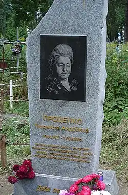 Liudmyla Protsenko died on 7 September 2000 in Kyiv. She was buried (according to the will) at the Lukyanivske Civil Cemetery next to her grandfather, the Ukrainian actor, singer, and choir conductor Kuzma Demidov (plot No. 30, row 9, place 8-2).