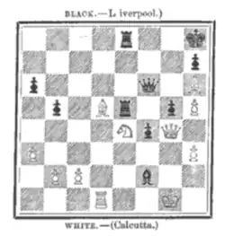 - ^ "Liverpool vs Calcutta Telegraph Match (1880)". www.chessgames.com. Retrieved 2021-10-24.