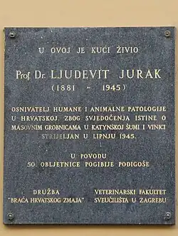 Since the democratic changes in 1990, the Ljudevit Jurak Clinical Department of Pathology in Zagreb has borne his name.[4]