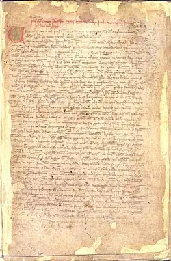 The Llibre dels fets (Catalan pronunciation: [ˈʎiβɾə ðəls ˈfets]; from Catalan, 'Book of Deeds'; Old Catalan: Libre dels feyts) is the autobiographical chronicle of the reign of James I of Aragon (1213–1276). It is written in Old Catalan[2] in the first person and is the first chronologically of the four works classified as The Four Great Catalan Chronicles,[3][4] all belonging to the early medieval Crown of Aragon (in the northeastern part of what is now Spain), and its first royal dynasty, the House of Barcelona. James I inherited as a child the titles of King of Aragon, Count of Barcelona, and Lord of Montpellier, but also became by conquest King of Majorca and King of Valencia. James emphasises in his chronicles his conquest of Majorca (1229) and of Valencia (1238).