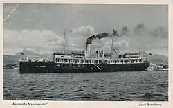 Companhia de Navegação Lloyd Brasileiro (English: Navigation Company Lloyd Brasileiro), usually just called Lloyd Brasileiro, Lóide or Lloydbrás, was a Brazilian shipping company founded on 19 February 1894.[1][2] It became the only major shipping company in South America, in particular by taking over German ships confiscated in 1917 by Brazil's entry into the First World War.[1] In 1931, Lloyd Brasileiro was among the 50 largest shipping companies in the world, owning 73 ships of 271,000 GRT combined.[1]