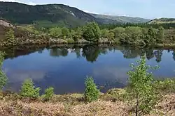 Llyn Bodgynydd is a lake in the Gwydir Forest in North Wales. It covers an area of some 14 acres (57,000 m2), and lies at a height of 822 feet (251 m) a.s.l.