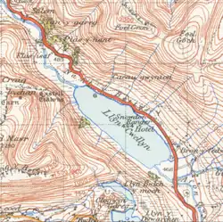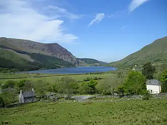 Llyn Cwellyn (Llyn Quellyn in some antiquated texts) is a reservoir in North Wales which supplies drinking water to parts of Gwynedd and Anglesey. It lies on Afon Gwyrfai in Nant y Betws between Moel Eilio and Mynydd Mawr in the northern part of Snowdonia National Park. It has an area of 215 acres (0.87 km2), and is over 120 ft (37 m) deep. It is considered relatively oligotrophic.[1] At the southern end is the small village of Rhyd Ddu.