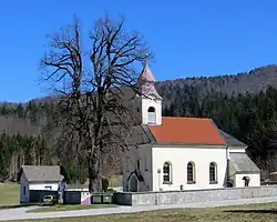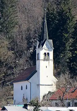 There are two churches in the settlement. The church in the centre of the town is dedicated to Saints Peter and Paul. It was first mentioned in written documents dating to 1428. During Ottoman raids in the late 15th century the church was fortified and a wall was built around the town. The second church is outside the town at the cemetery and is dedicated to Saint Roch. It was built in 1635 after an oath by locals in a 1631 outbreak of bubonic plague.[9]