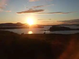 The loch contains four islands; Harlosh Island, Tarner Island, Wiay and the tidal island of Oronsay off Ullinish point.