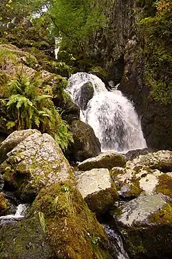 Lodore Falls is a waterfall in Cumbria, England, close to Derwentwater and downstream from Watendlath. The falls are located on the beck that flows from Watendlath Tarn, and tumble more than 100 feet (30 m) over a steep cascade into the Borrowdale Valley.[1] It is spectacular after heavy rain, but it may reduce to a trickle if there is a long period of dry weather.[2]