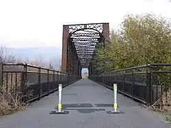 For cyclists, dedicated bike lanes run east to west through Logan on Indiana and Sharp Avenues. Shared use paths for cyclists and pedestrians also exist in Logan. The Spokane River Centennial Trail runs along the river connecting Logan with Downtown to the west and to points east as far as Idaho. The Don Kardong Footbridge and Iron Bridge carry automobile-free paths across the river, while a bridge carries the Centennial Trail over Hamilton Street at Gonzaga's campus.[18]