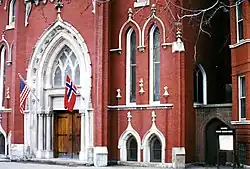The area is characterized by the prominent historical boulevards and large bungalow-style homes. At one time, Logan Square boasted a large Norwegian-American population, centered along the historic boulevards. With relatively inexpensive housing and rent available, this neighborhood was a favorite for immigrants and working-class citizens. Logan Square was the site of the Norwegian-American cultural center, Chicago Norske Klub. Many elaborate, stylish, and expensive houses and mansions line historic Logan and Kedzie Boulevards where the club was once situated. Norwegian Lutheran Memorial Church (Norwegian: Den Norske Lutherske Minnekirke), also known as Minnekirken, is also located on Kedzie Boulevard in Logan Square.[19]