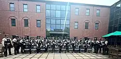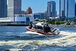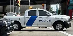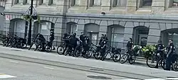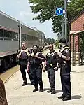 The Milwaukee Police Department, Wisconsin State Patrol, and other local law enforcement agencies played a key role in convention safety and security.[82] Additionally, of out-of-city police officers assisted in securing the city during the convention.[90] As of April 2023, it was estimated that security for the Republican National Convention could necessitate 4,500 police officers from agencies outside of Milwaukee Police Department. This number is 1,500 greater than the number of outside police officers that had originally been expected in the plans for a full-scale 2020 Democratic National Convention in the city.[84] 44 police agencies from elsewhere in Wisconsin and more than 63 out-of-state police departments from 24 states plus the District of Columbia are providing officers to help secure and police Milwaukee during the convention. Included were two agencies with history of major party conventions previously held in their own cities: Cleveland MetroPark police and Cuyahoga County Sheriff's Office (Cleveland hosted the 2016 RNC) as well as the Charlotte-Mecklenburg Police Department (Charlotte hosted the 2012 DNC and a portion of the downscaled 2020 RNC).[76]