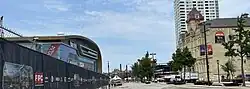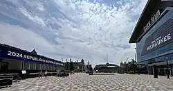 ![]() Exterior of Fiserv Forum, decorated in preparation for the convention | |