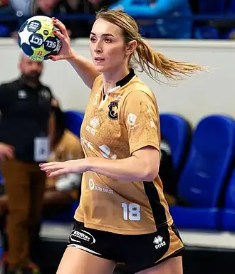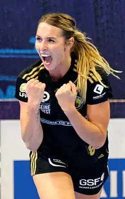 She represented the Netherlands in six World Women's Handball Championship (winning a silver in Denmark 2015,[16] a bronze in Germany 2017,[17] and winning gold in Japan 2019), in four European Women's Handball Championship (winning a silver in Sweden 2016[18]) and two editions of the Olympic Games (finishing fourth in Rio 2016 and fifth in Tokyo 2020).[19] At the World Championship in 2017 she became a member of the All-Star team (as the best Left Back of the competition) and she was among the top goalscorers, ranking second with her 58 goals scored.[20]