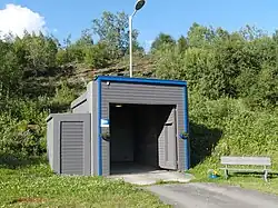 The Lomi Hydroelectric Power Station (Norwegian: Lomi kraftverk or Lomi kraftstasjon[1]) is a hydroelectric power station in Fauske Municipality in Nordland county, Norway.[2] It utilizes a drop of 580 meters (1,900 ft)[1] between its intake reservoir on Lomivatnet (Lake Lomi,[3][4] Lule Sami: Loamejávrre[3]), which can be regulated at a level between 708 m (2,323 ft) and 649 m (2,129 ft). The reservoir is supplied by water from Storelvvatnan (Lule Sami: Duolldagåpjávrre[5]), a lake regulated at a level between 798 m (2,618 ft) and 792 m (2,598 ft), and also by some stream intakes. Part of the water supplying the plant is runoff from the Sulitjelma Glacier. The plant has two Francis turbines and operates at an installed capacity of 120 MW, with an average annual production of about 362 GWh.[1] Its total catchment area is 145 square kilometers (56 sq mi). The plant is owned by Salten Kraftsamband and came into operation in 1979.[1] The water is reused by the Sjønstå Hydroelectric Power Station further downstream in the Sulitjelma drainage system.