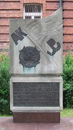 During World War I, the Russian administration was evacuated in June 1915, and the city was occupied by Germany from August 1915[14] until 1918. In 1916 the Poles finally erected a still preserved monument at the site of the Russian executions of Polish insurgents.[13] In 1916–1917, the Polish Legions were stationed in the city. In 1917–1918, Łomża was the location of a German internment camp for soldiers of the Polish Legions. In November 1918, Poland regained independence, and the occupying German forces opened fire on Poles who tried to liberate the city,[15] but it was still reintegrated with the reborn Polish state.