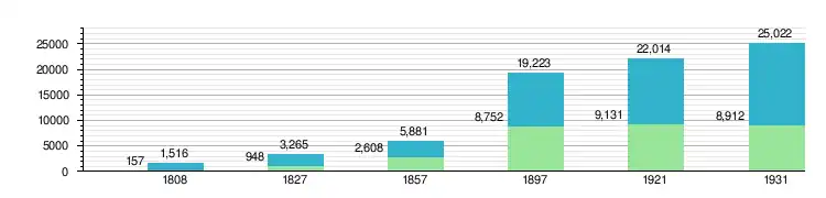 References to Jewish residents in Łomża (Yiddish: לאמזשע, romanizedLomzhe) date to 1494. The population numbers date back only to 1808, when 157 Jews were officially counted. A magnificent stone synagogue was built there in 1881 on the initiative of Rabbi Eliezer-Simcha Rabinowicz. The Great Synagogue designed by Enrico Marconi became a centre of the Zionist movement.[3] The Lomza Yeshiva attracted hundreds of Orthodox Jewish students, founded in 1883.[37] In 1931, there were 8,912 Jews who lived in the city.