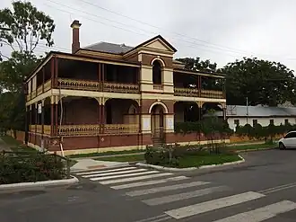 - 1. A two-storey brick Victorian Filigree Style commercial building facing onto Oxley Street and Sturt Streets.