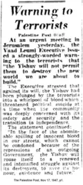 - ^ a b Egan, Charles E. "British Put Palestine Up to U.N." The New York Times. pp. 1, 5.