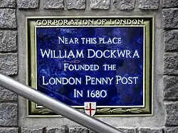 - ^ a b c "William Dockwra and the Penny Post Service". Canadian Museum of Civilization. Retrieved 8 November 2010.